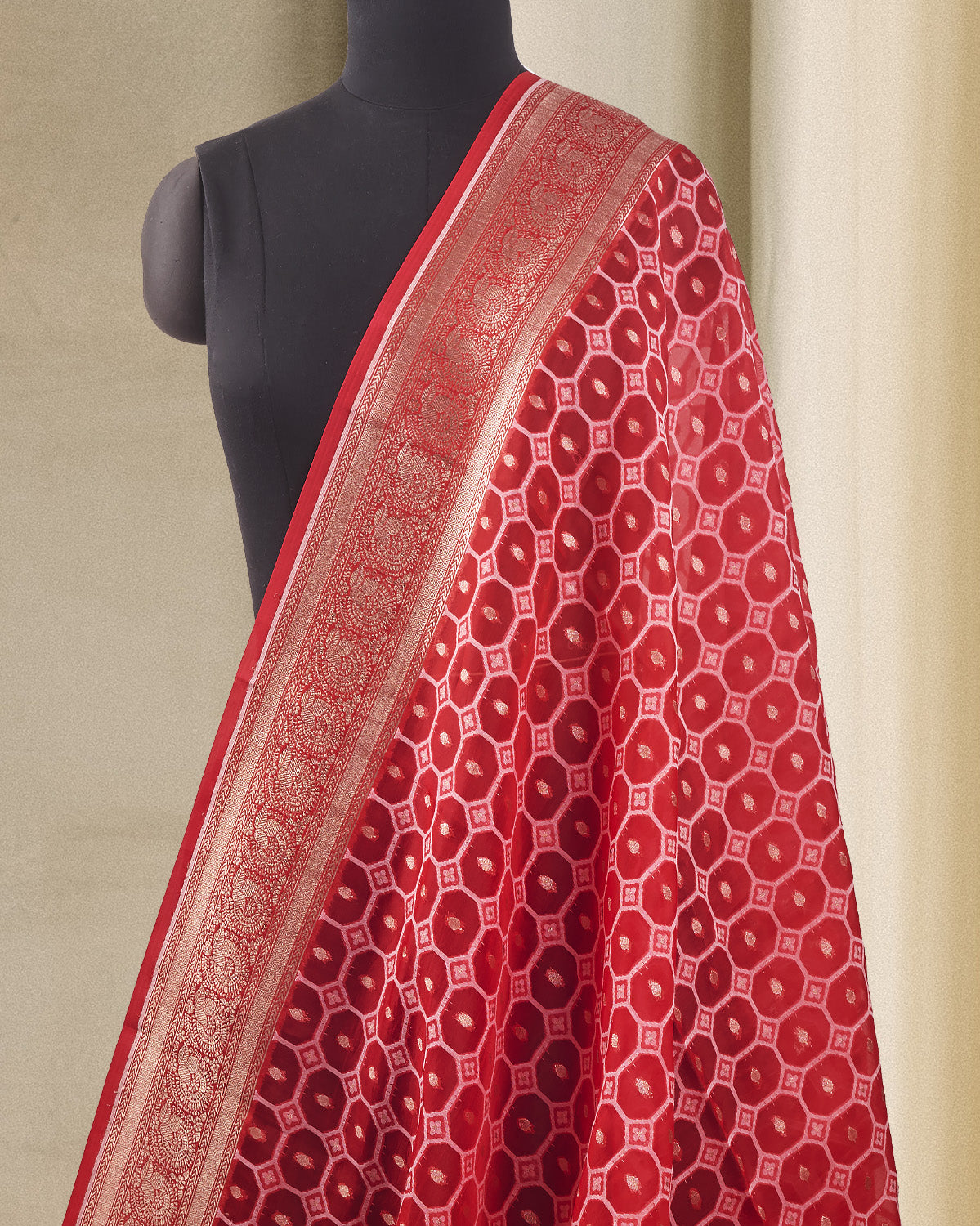 Organza dupattas exude an aura of sophistication, making them a popular choice for special occasions and weddings. The sheer fabric delicately drapes over ethnic ensembles, adding an extra layer of grace.