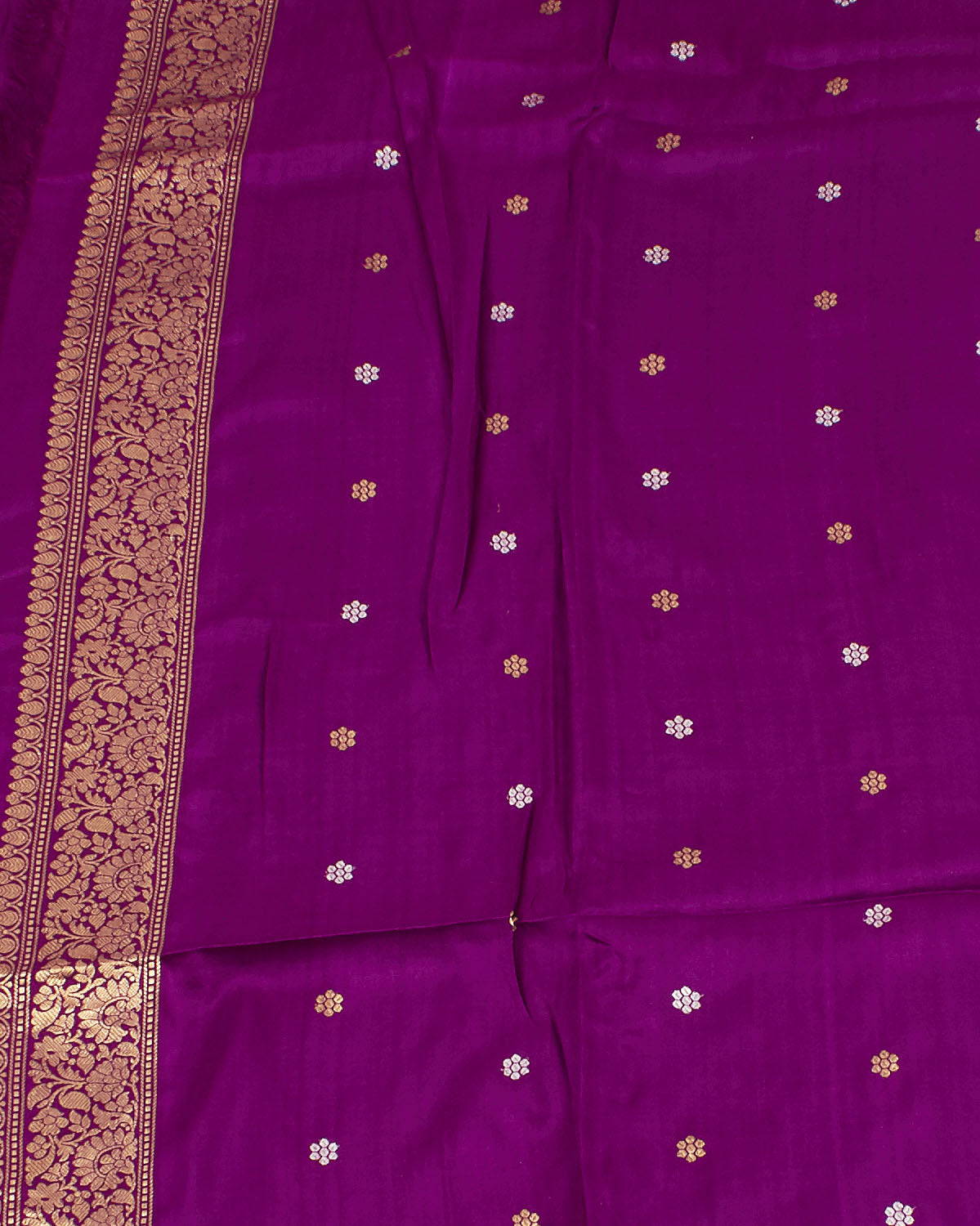 blouse piece color: Magenta with gold zari boti & border