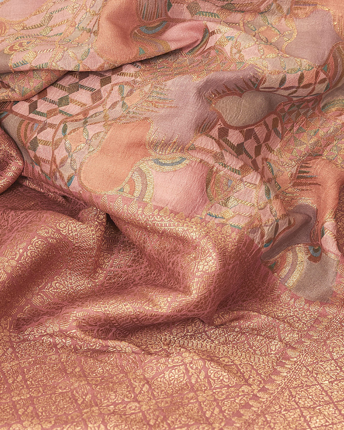 Rangkaat with a twist, the traditional Banarasi rangkaat silk saree in a contemporary avatar.