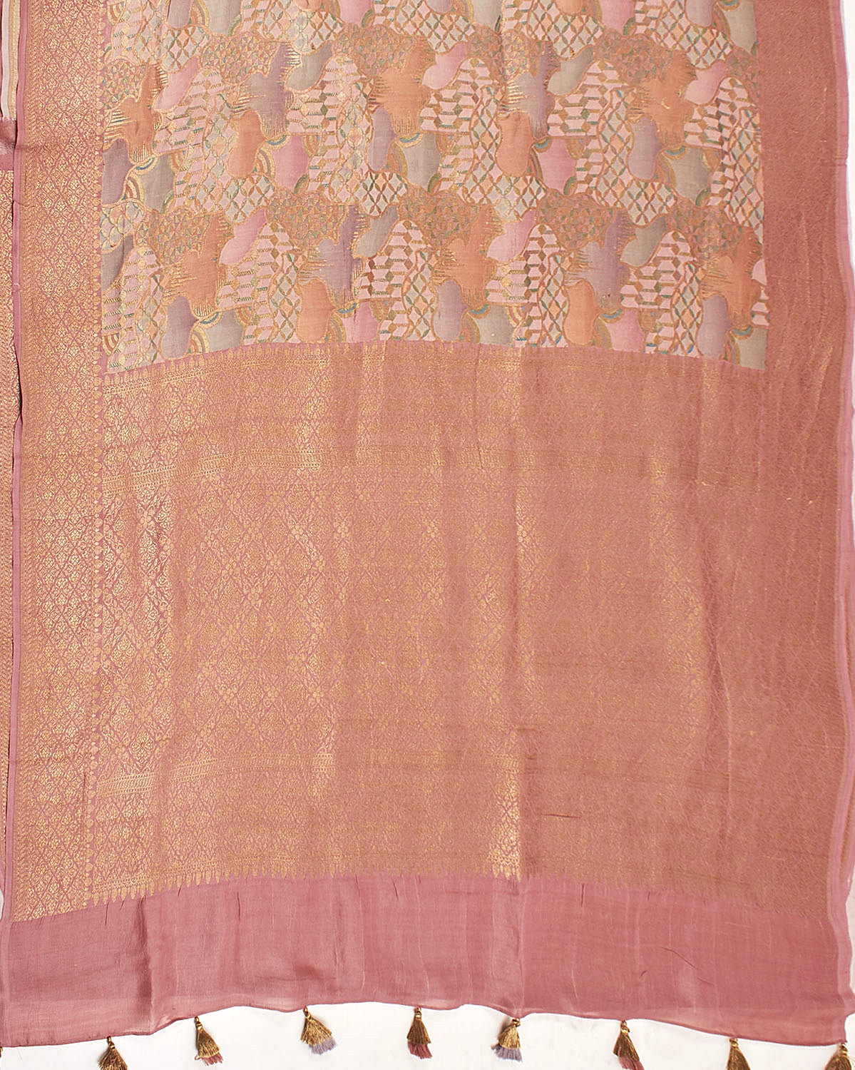 Rinpoche Pastel Peach Rangkaat Tussar Georgette Saree