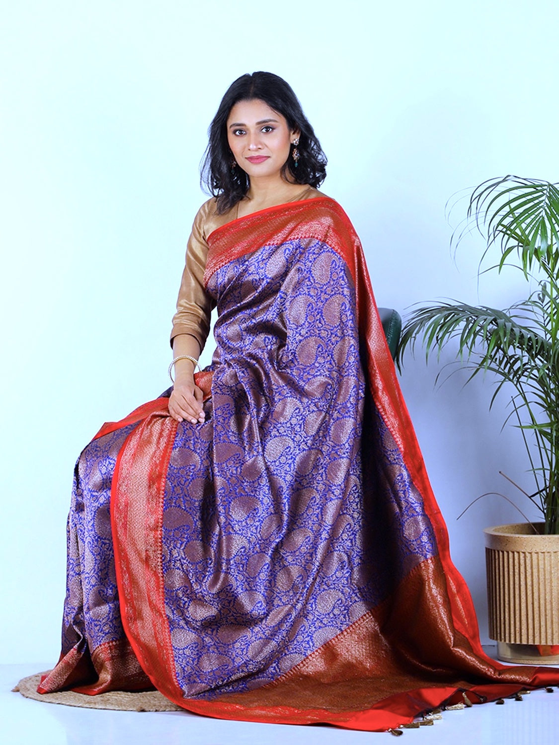 Saree color: Blue & Red
