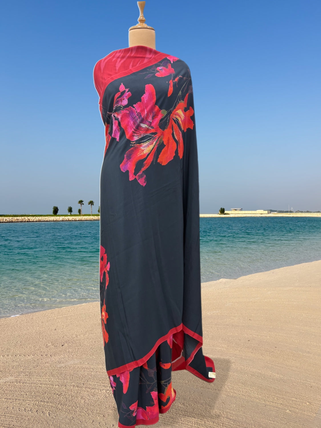 A beautiful chic crepe saree perfect for your wine & cheese celebration in true French tradition.