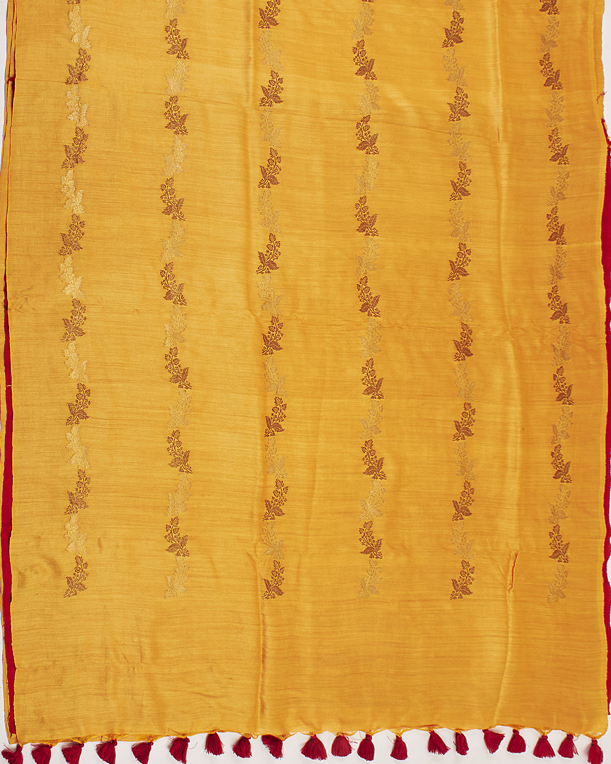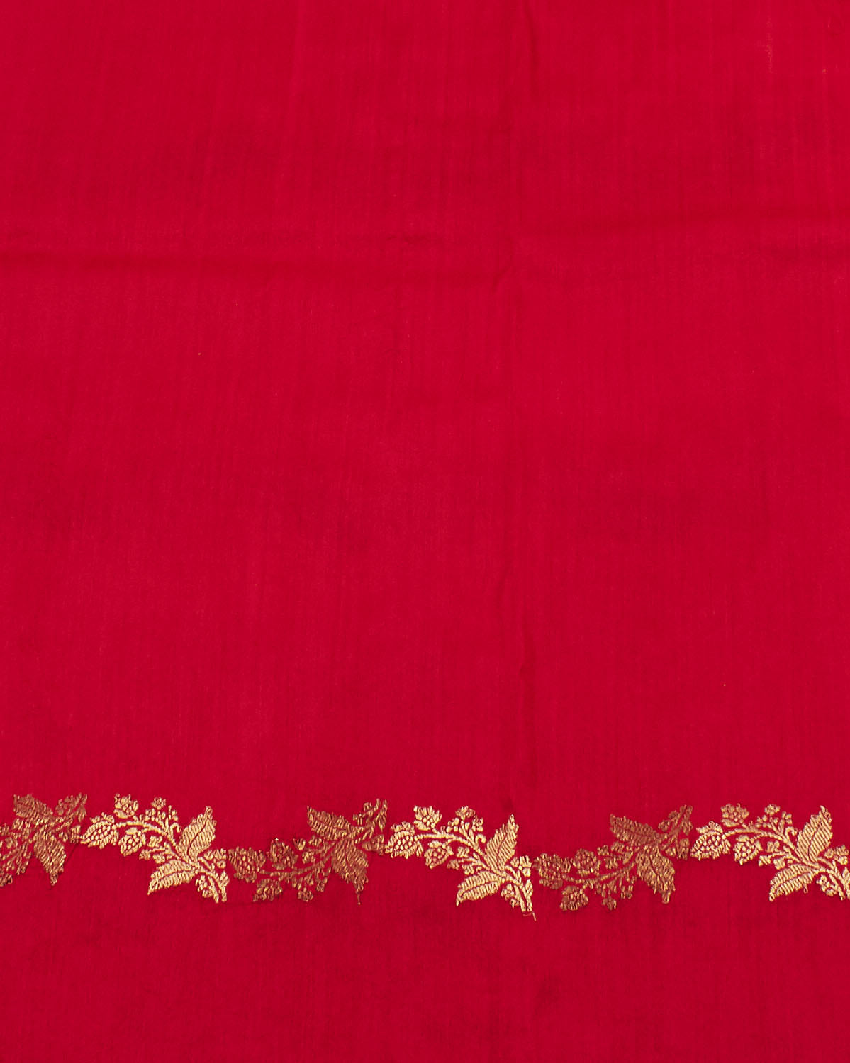main body: Antique and gold zari horizontal floral creepers all over woven in kadhuwa technique.