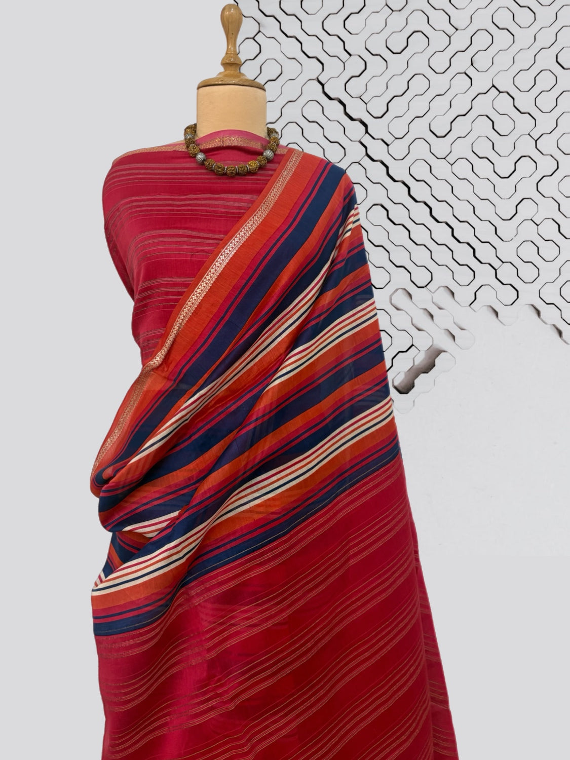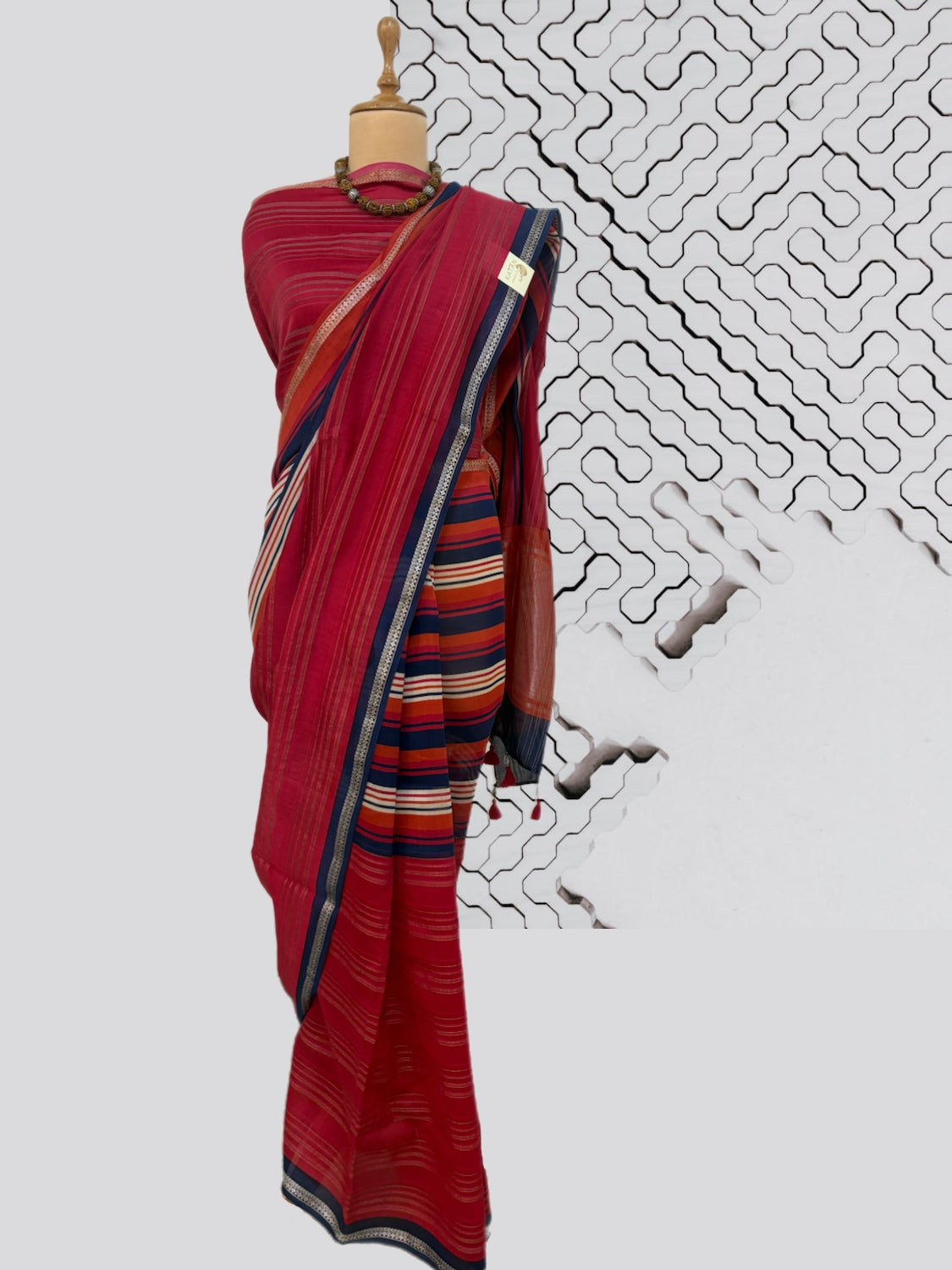Blouse piece colour: Ruby with woven gold zari stripe.